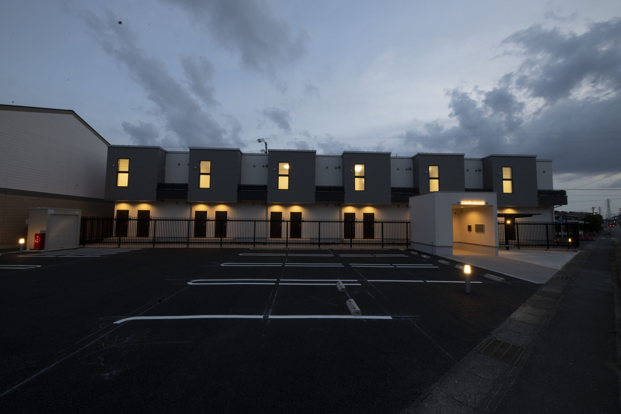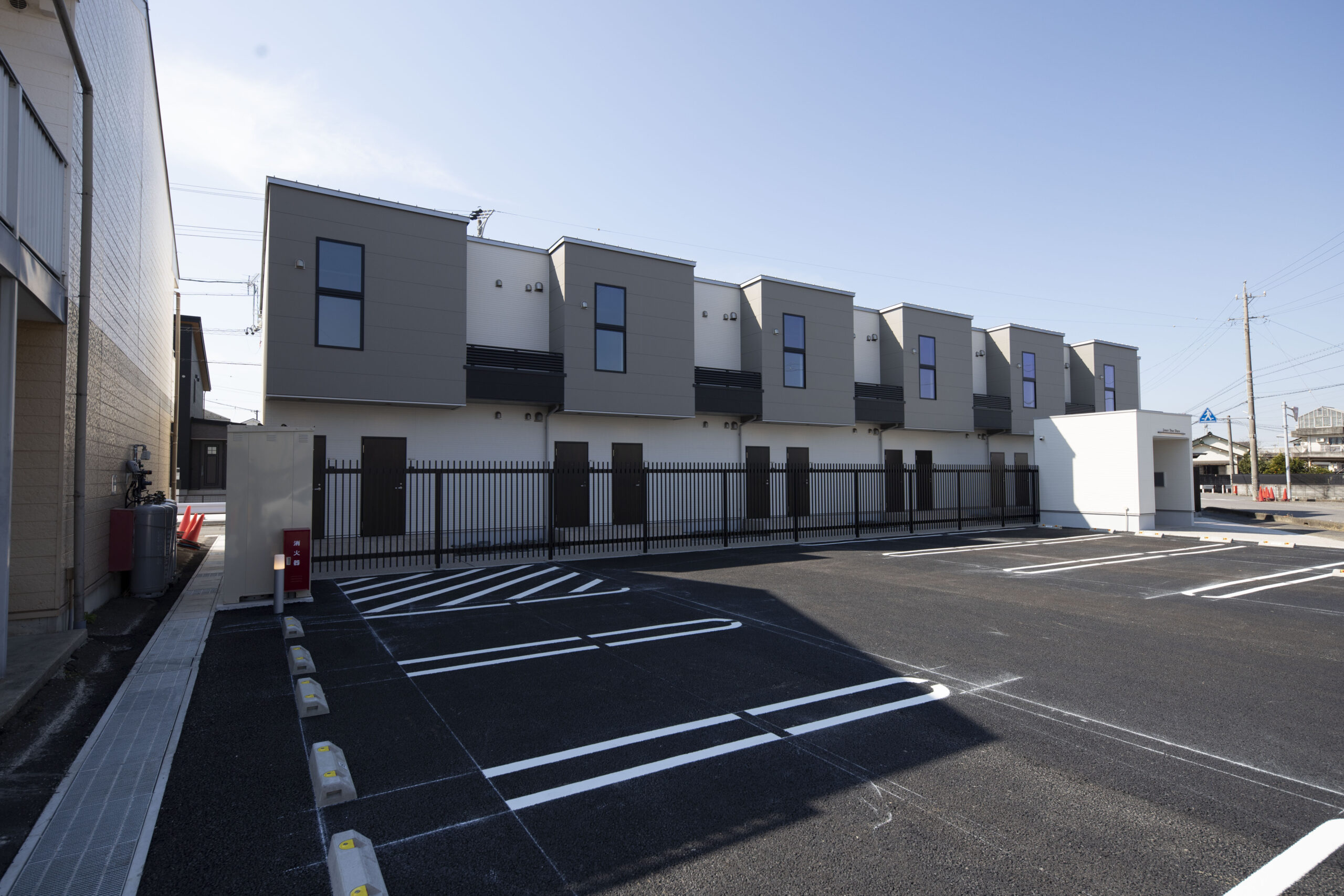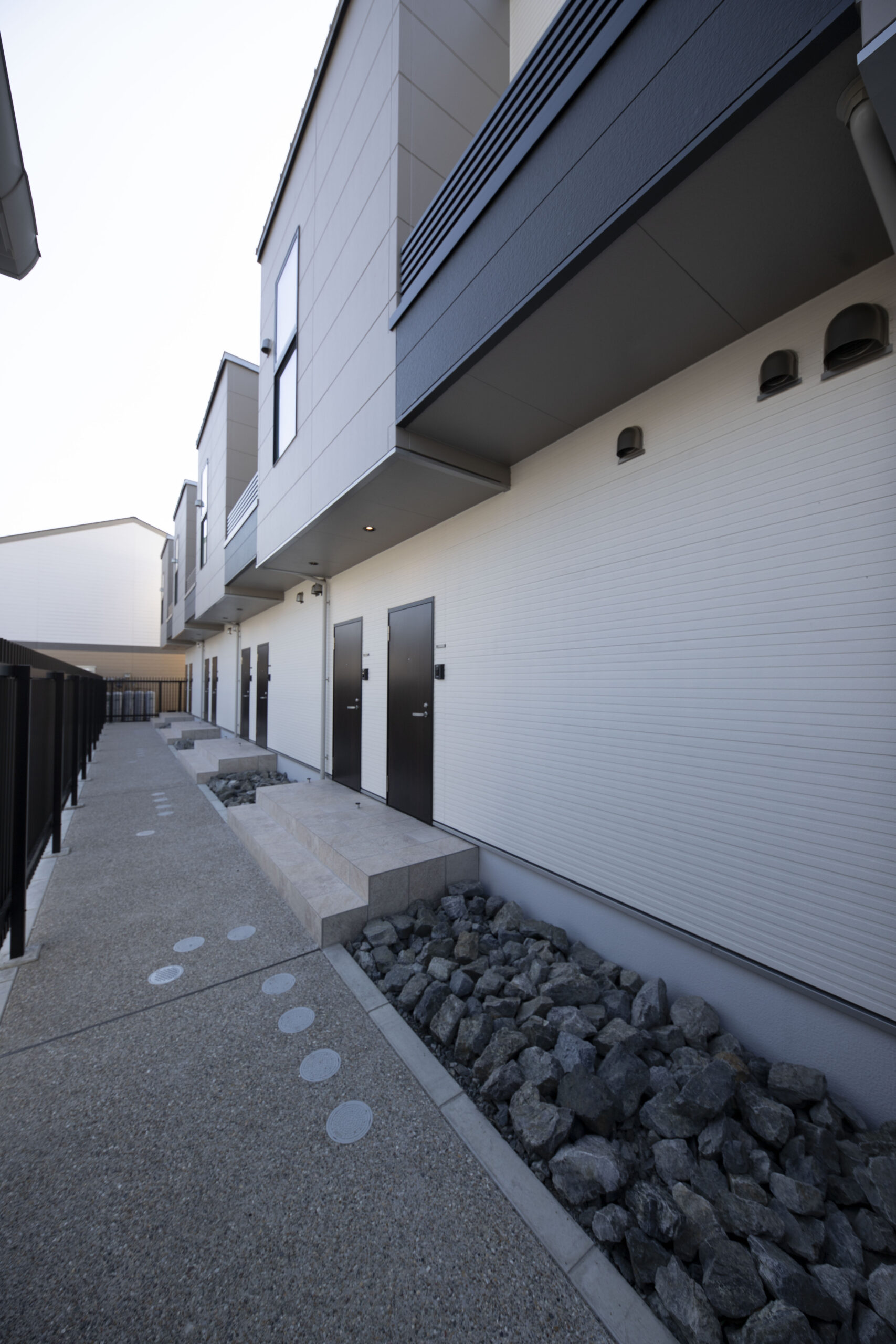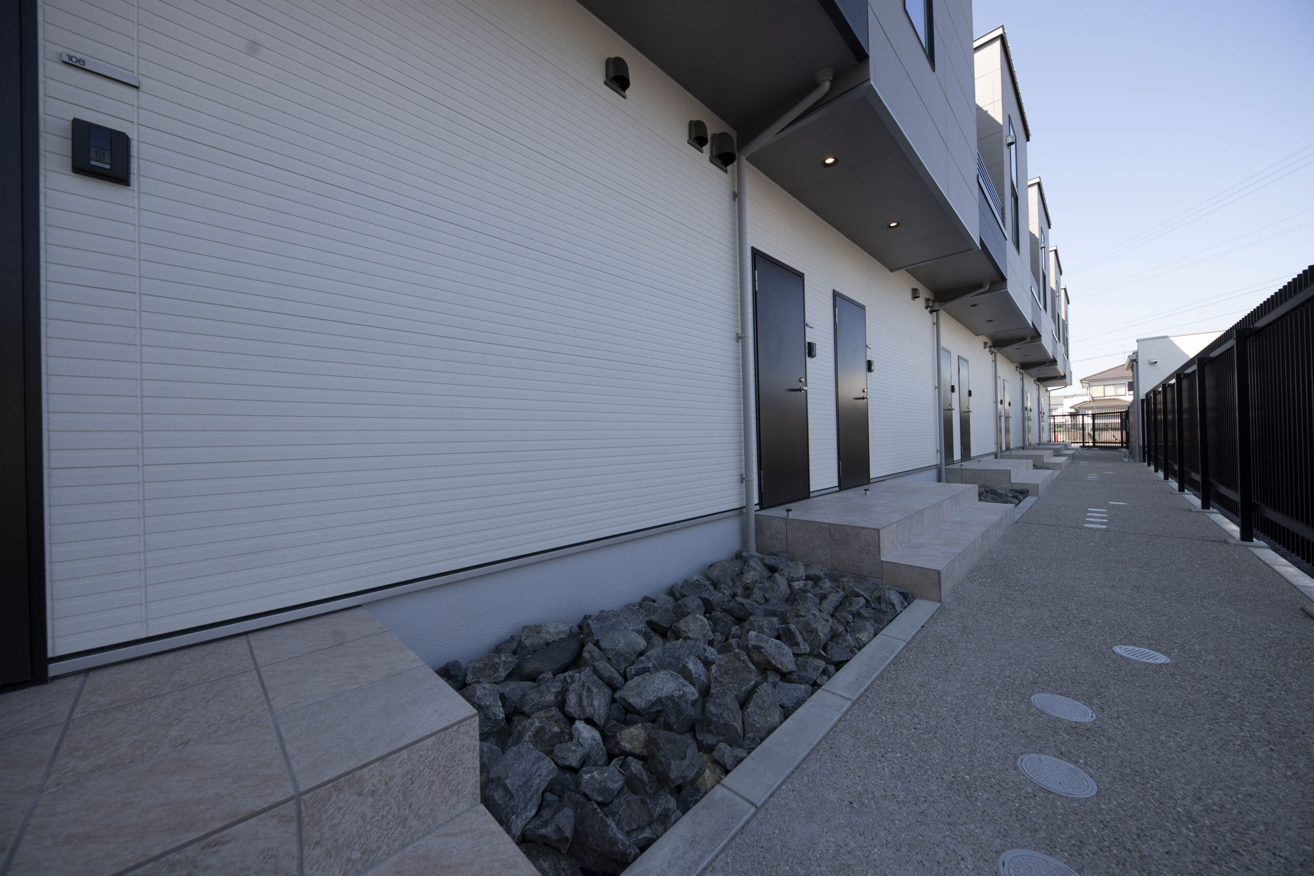外観は、立方体のフォルムが印象的なスタイリッシュデザイン。シンプルながらも存在感のある佇まいで、街並みに映える外観です。