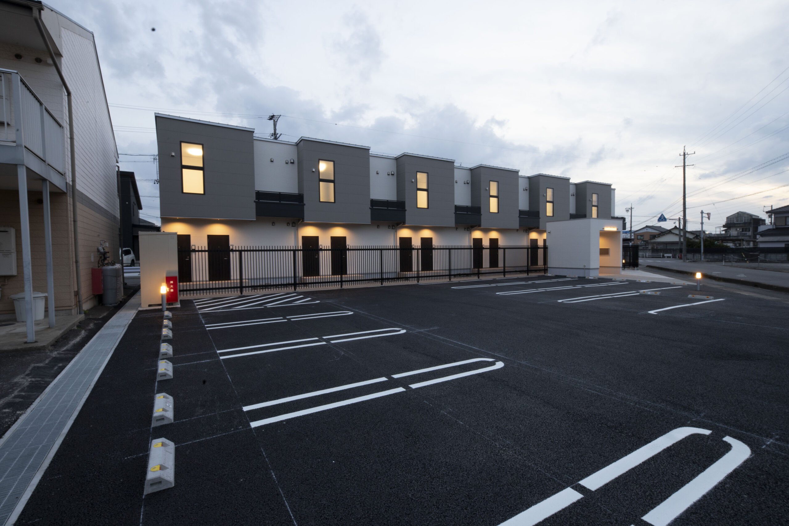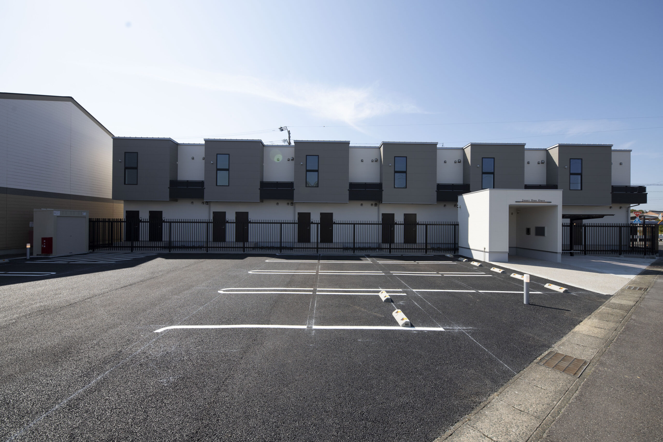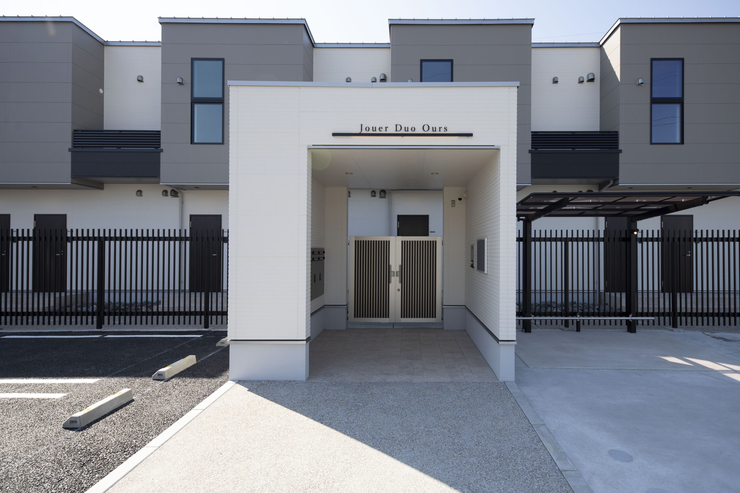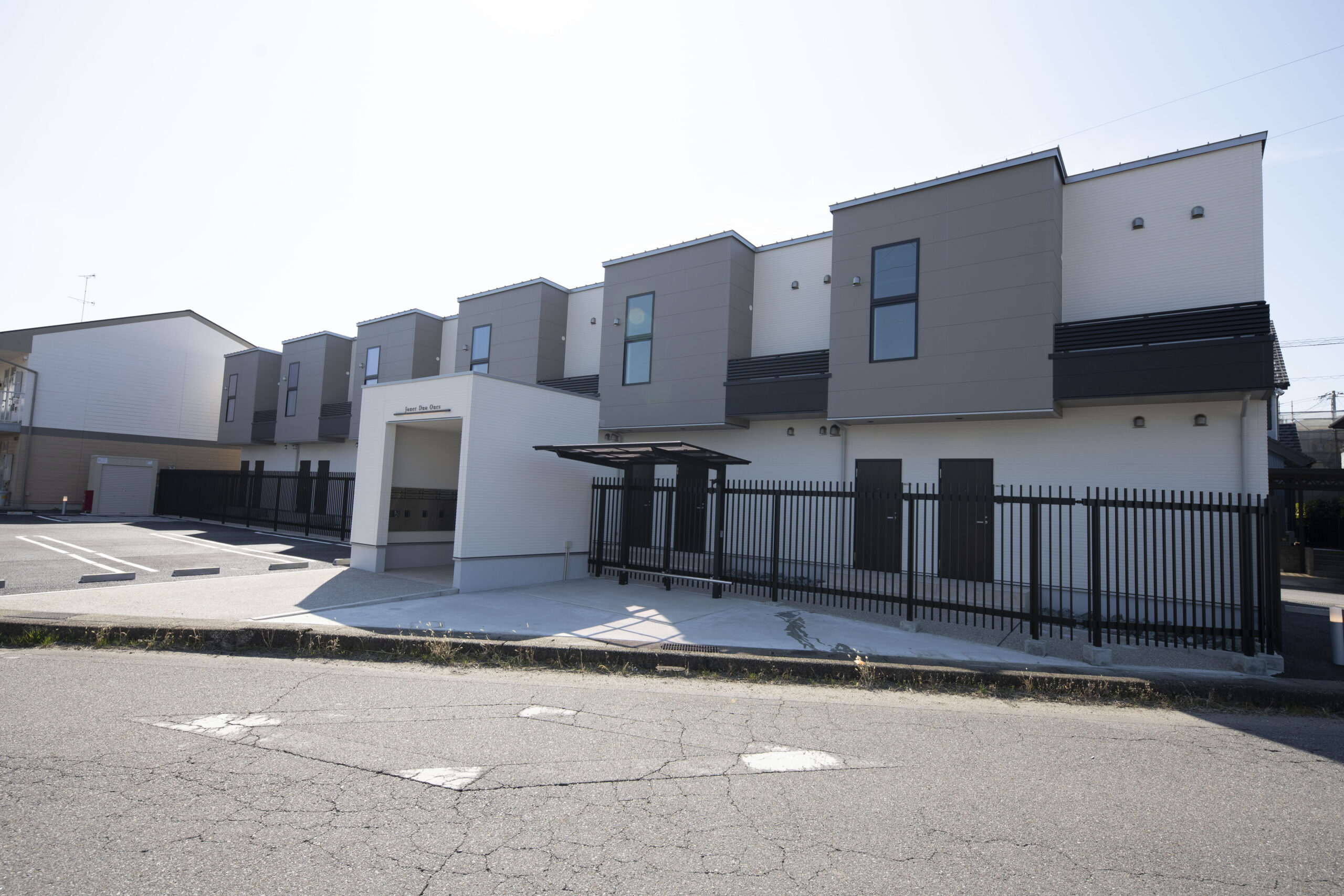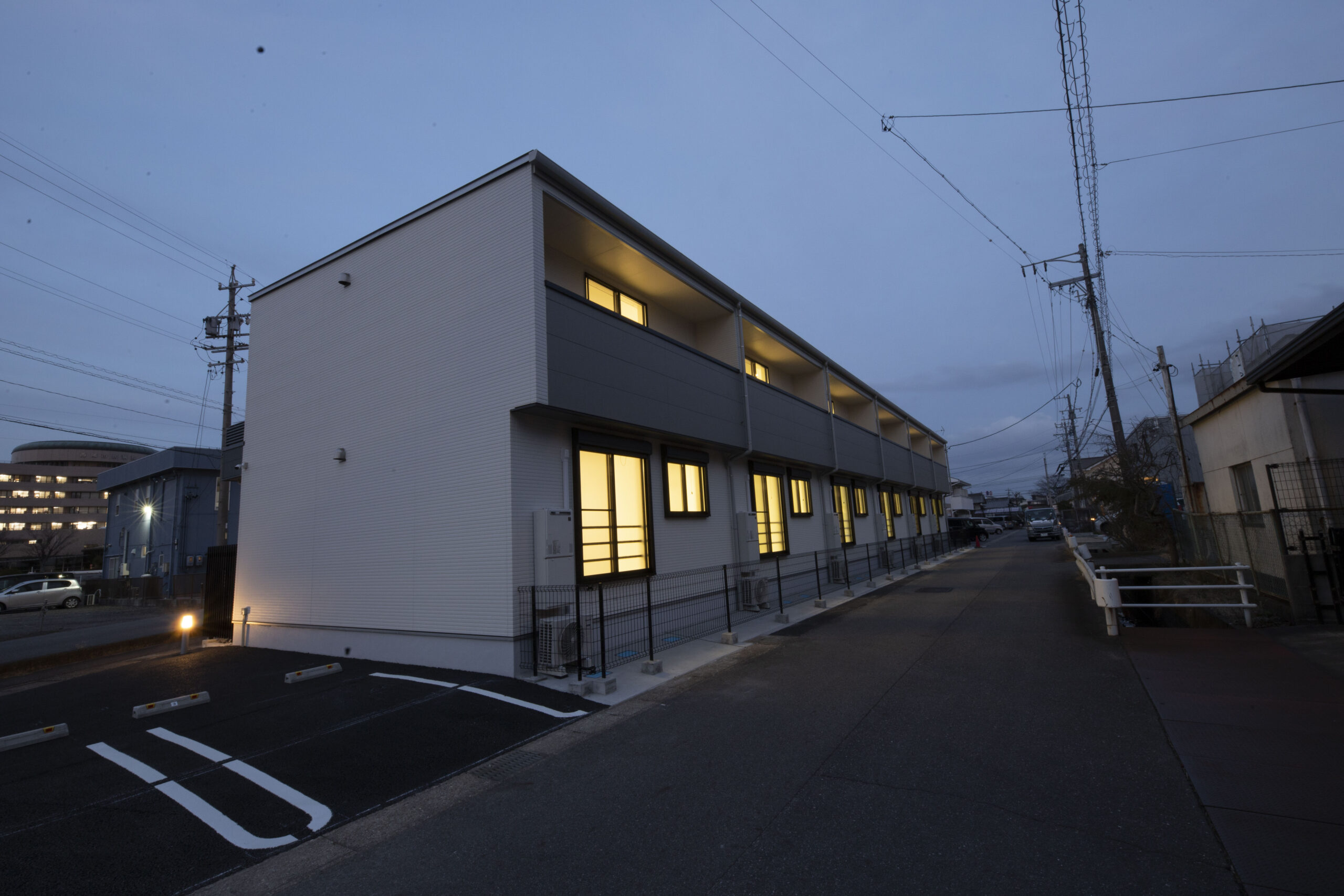 外観は、立方体のフォルムが印象的なスタイリッシュデザイン。シンプルながらも存在感のある佇まいで、街並みに映える外観です。
