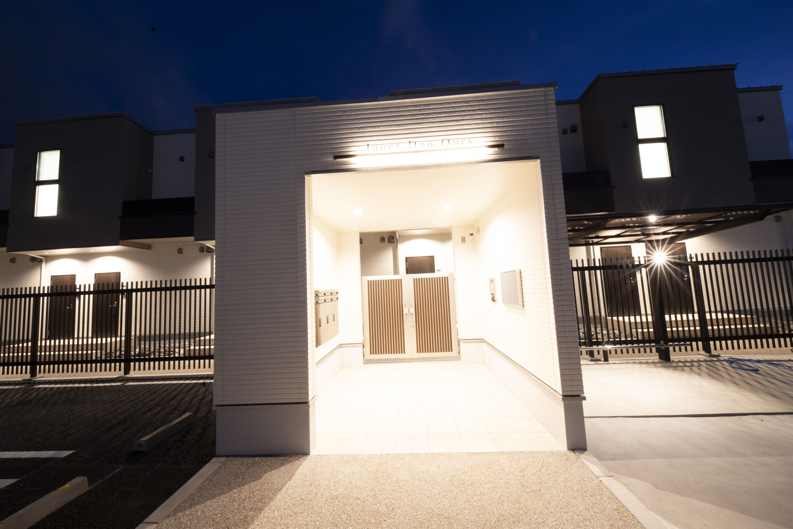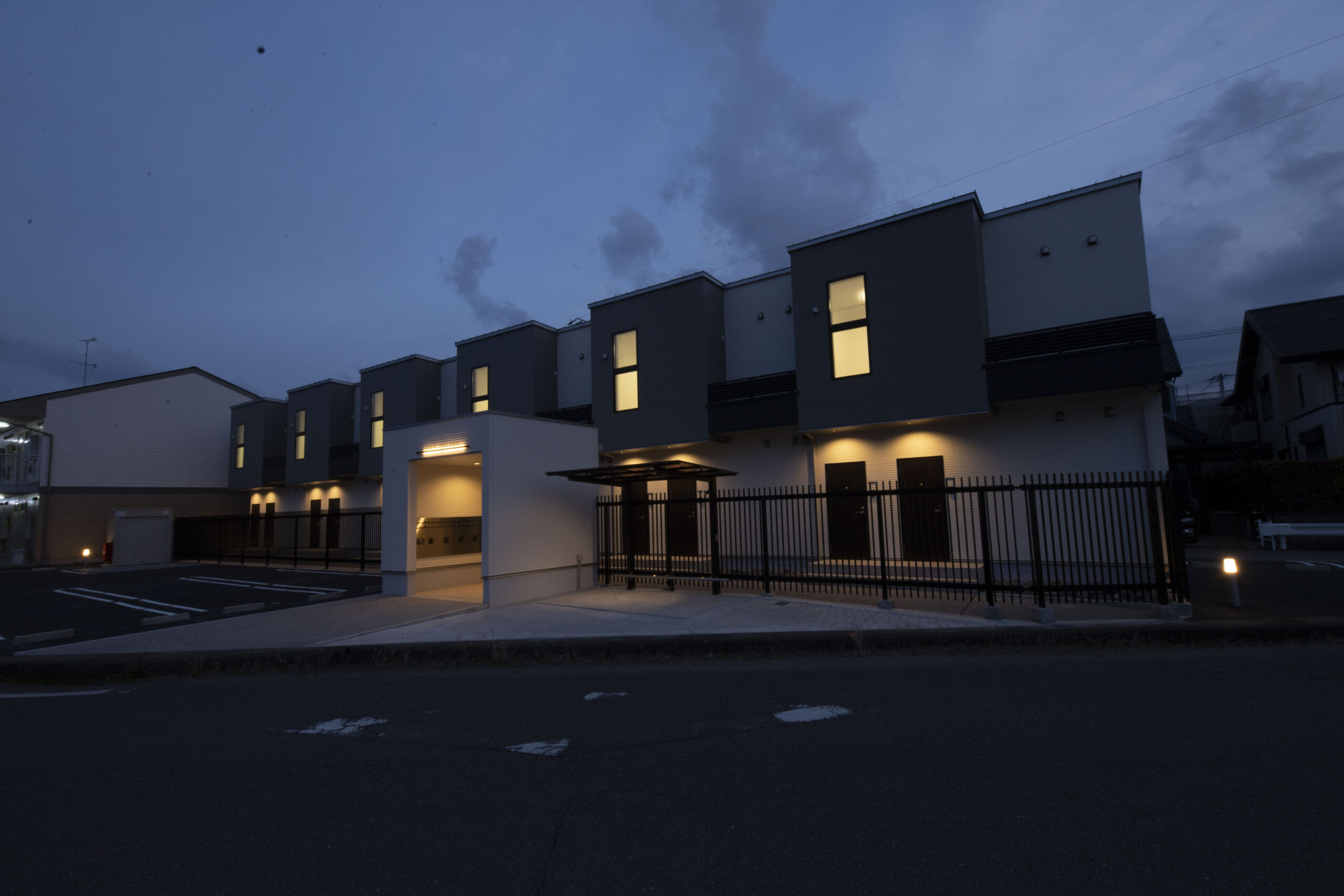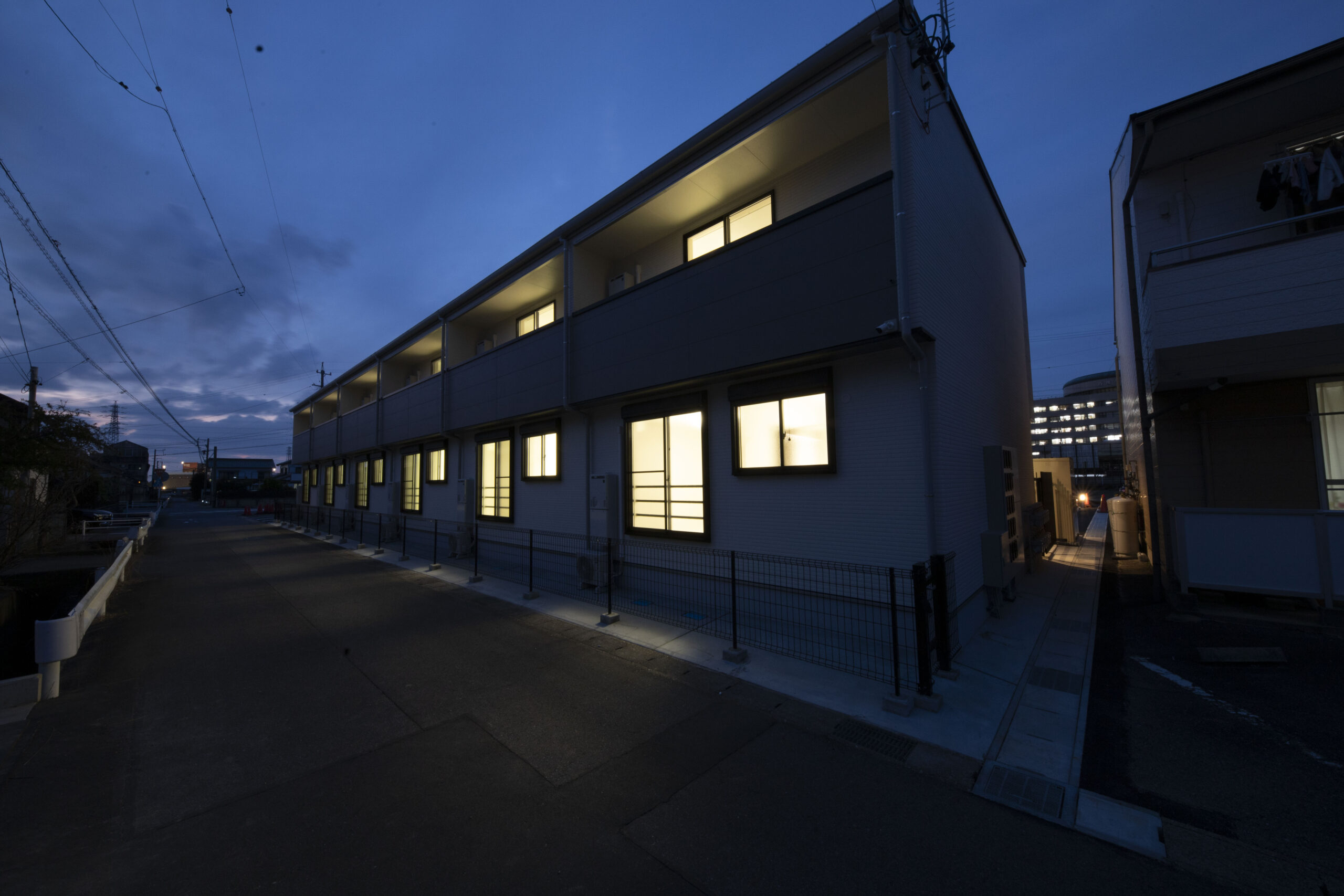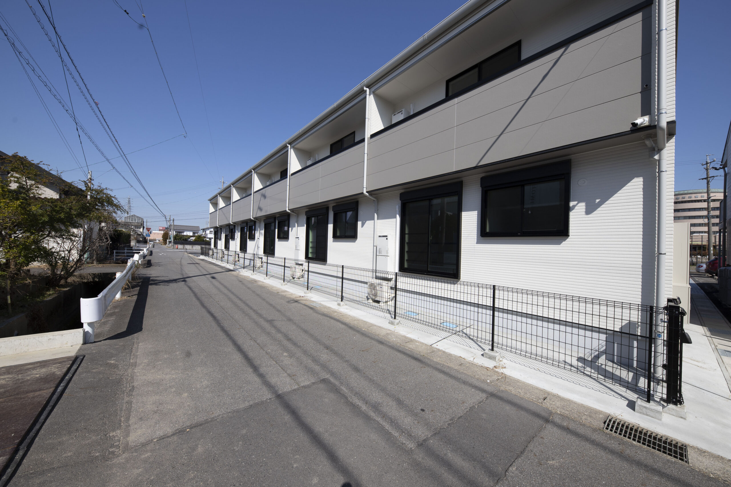 外観は、立方体のフォルムが印象的なスタイリッシュデザイン。シンプルながらも存在感のある佇まいで、街並みに映える外観です。