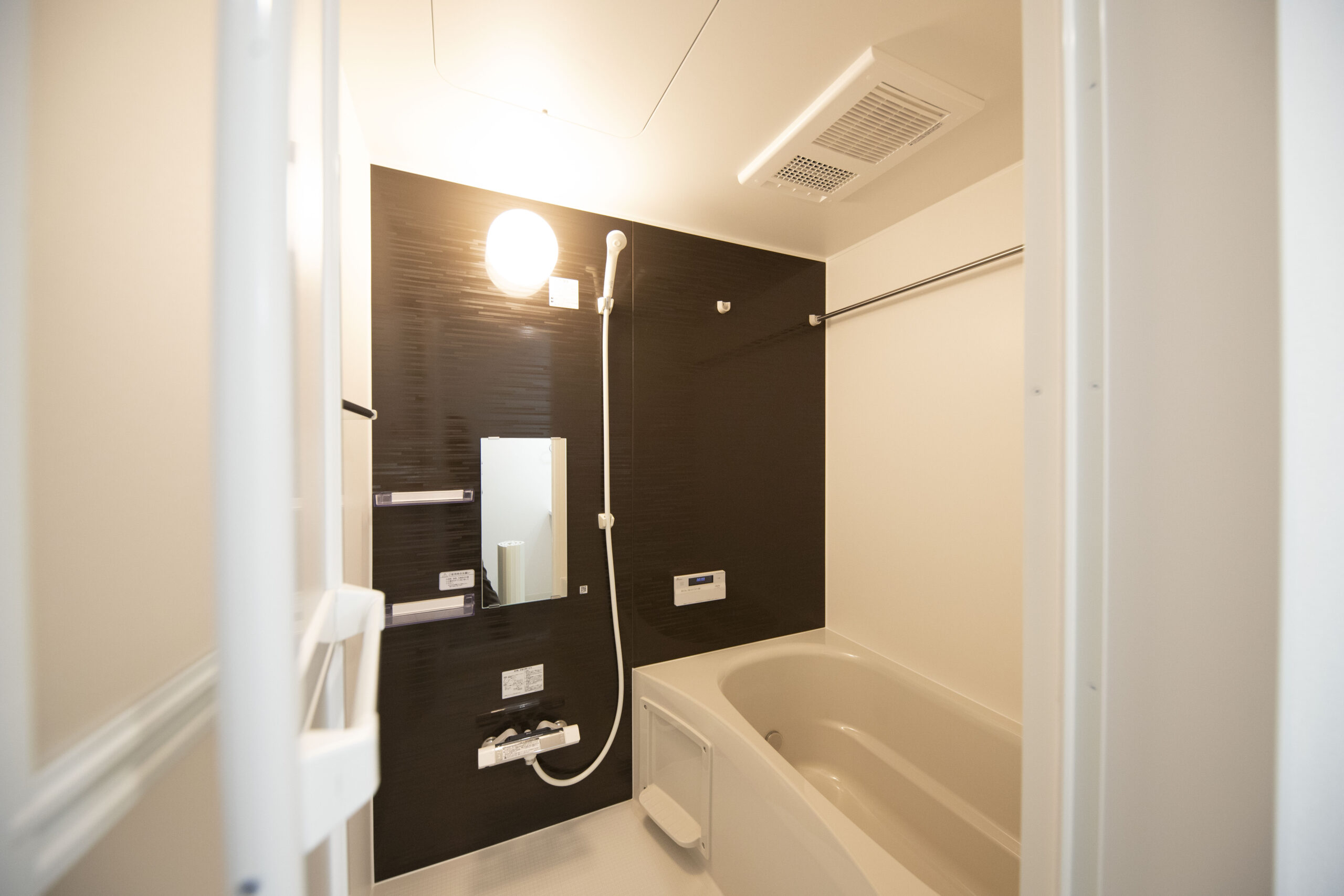 セキュリティ面では、別棟エントランスとオートロック設備を採用し、安心の暮らしをサポート。浴室には暖房乾燥機を標準装備しており、寒い季節でも快適な入浴が可能です。天候に左右されず洗濯物を乾かせるため、日々の家事負担を軽減できます。さらに追い焚き機能も備え、暮らしにゆとりをもたらします。