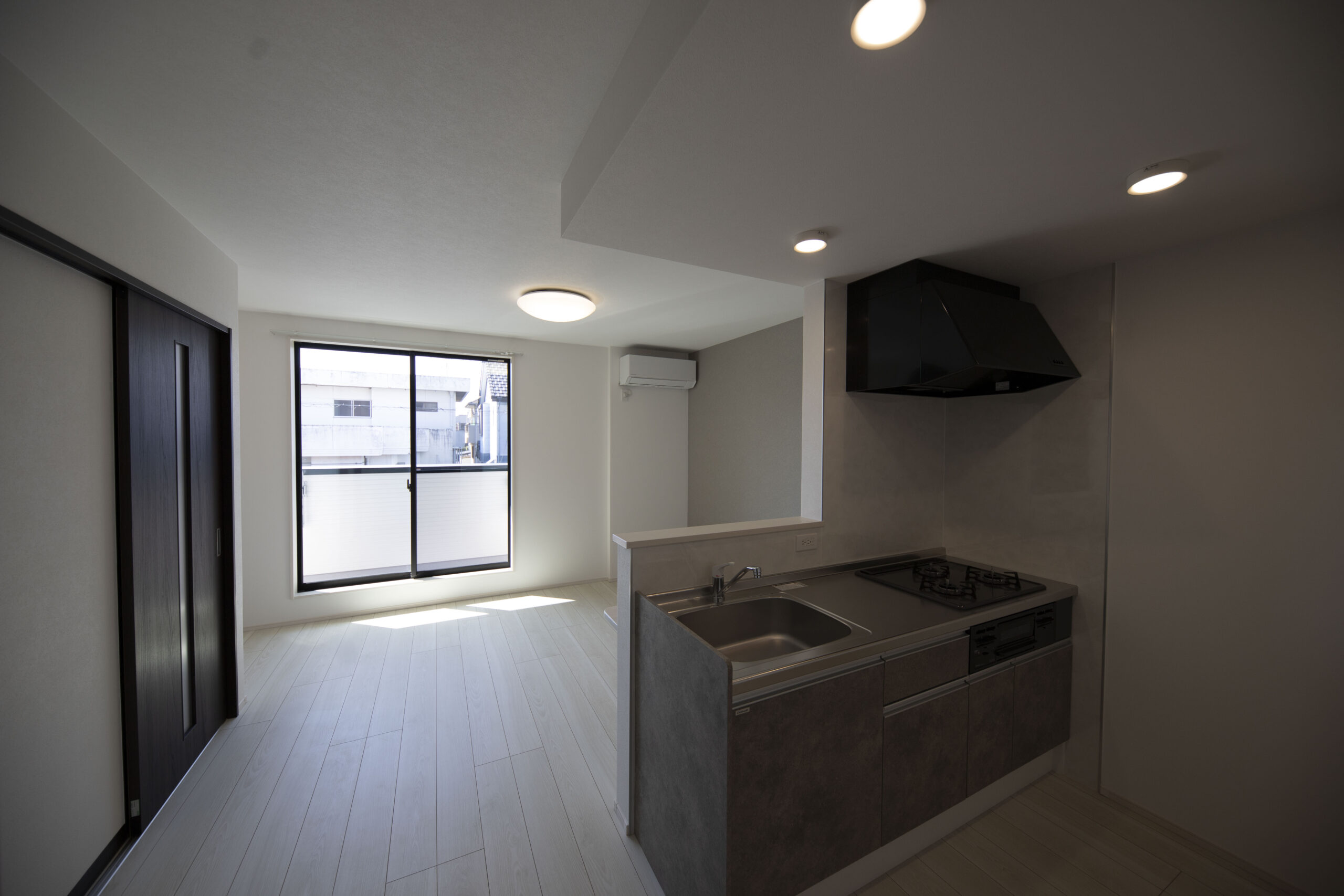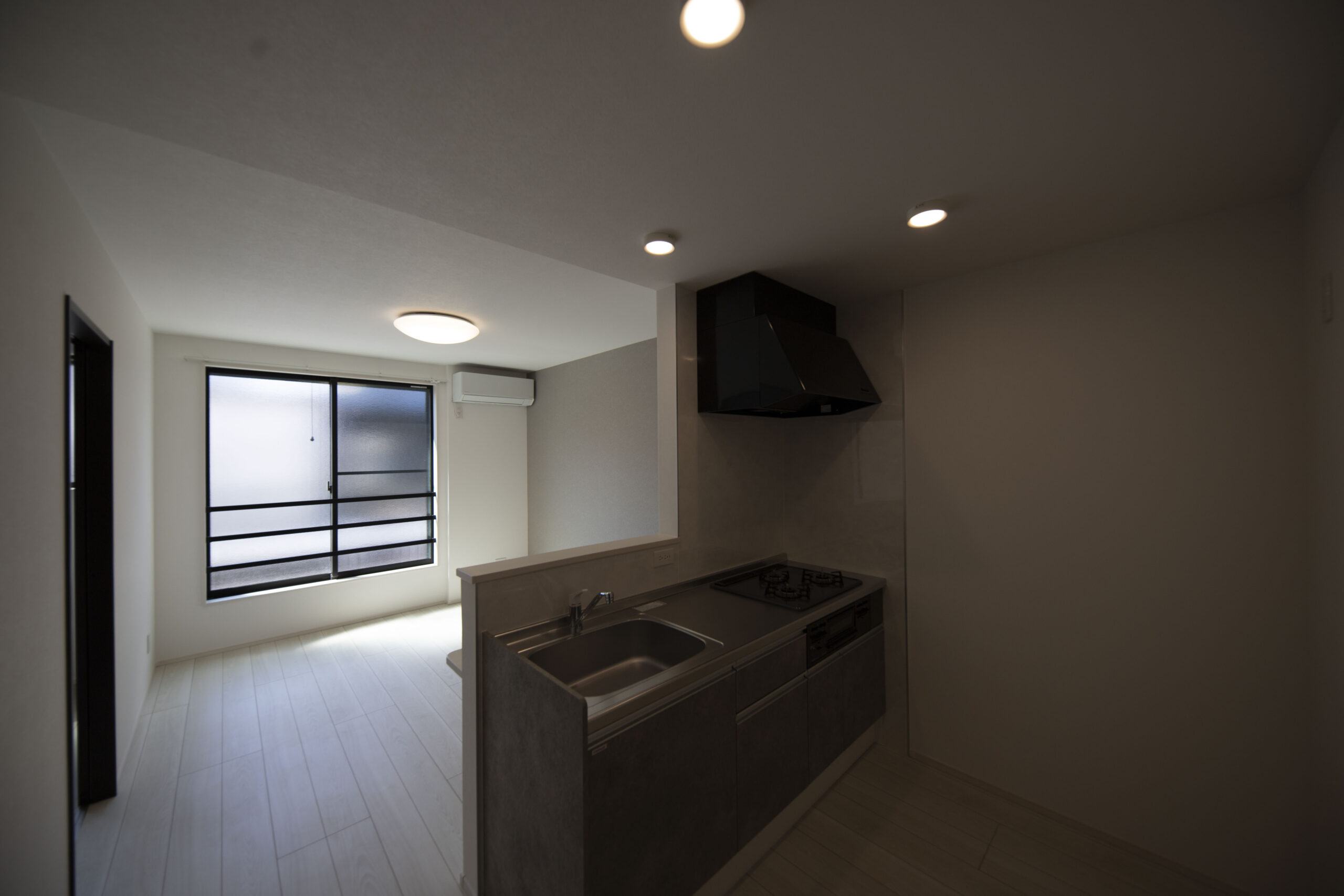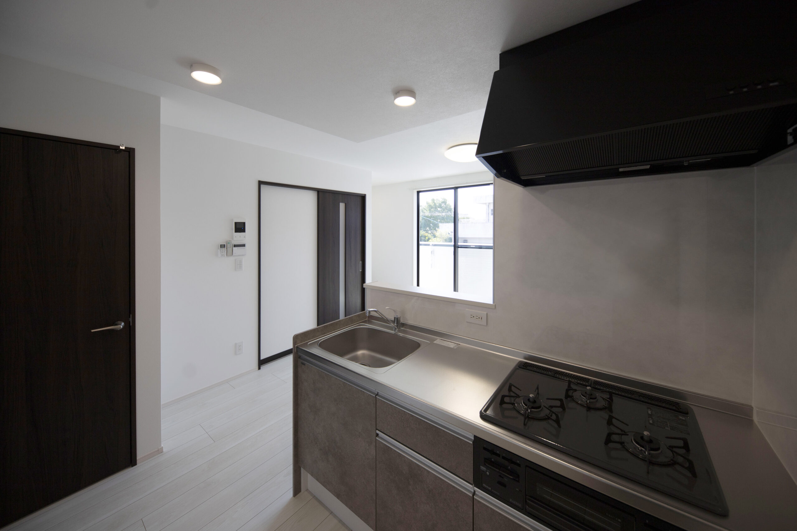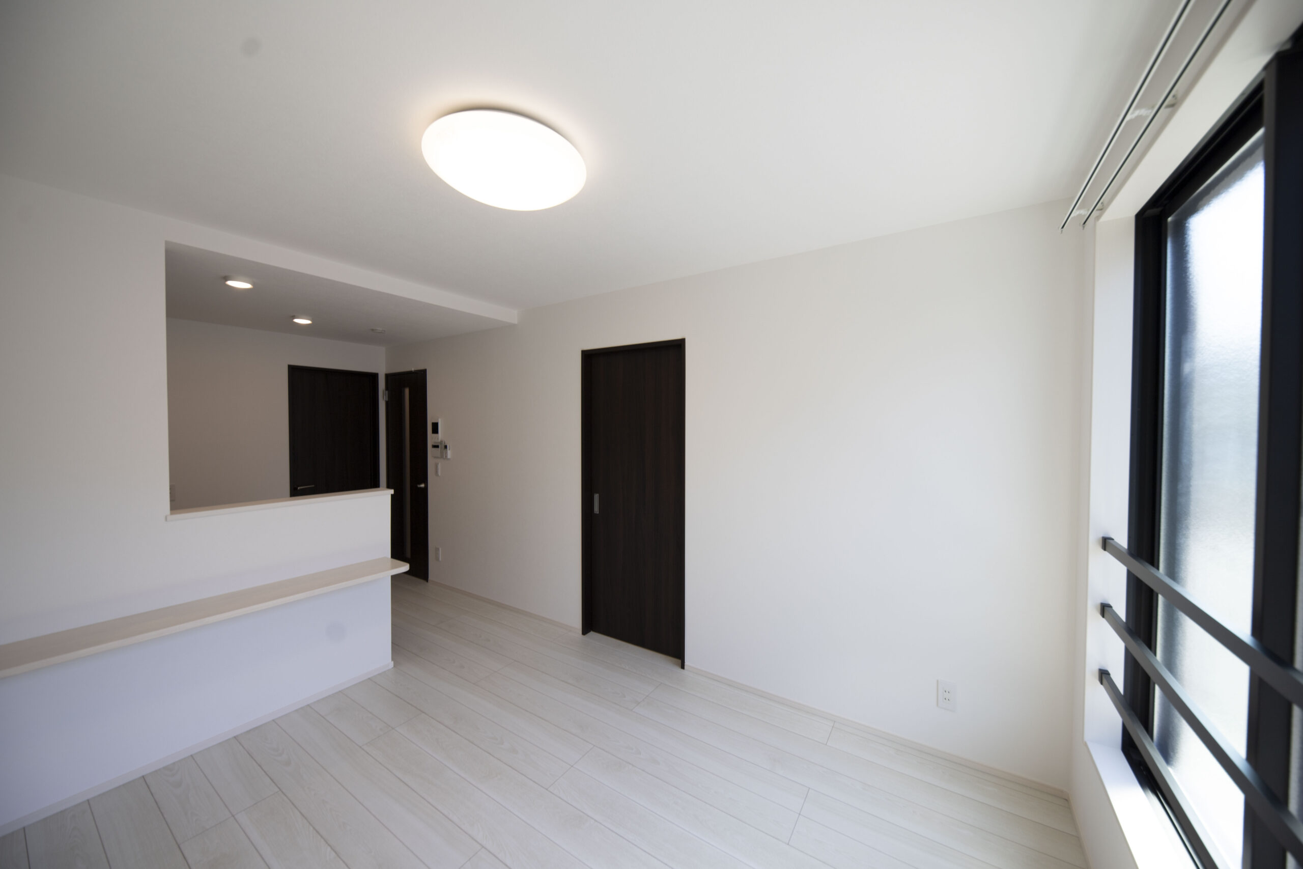 キッチン前には便利なカウンターを設置。お食事はもちろん、ちょっとした勉強や作業スペースとしてもお使いいただけるので、ダイニングテーブルを置かずにスッキリとした空間づくりが可能です。