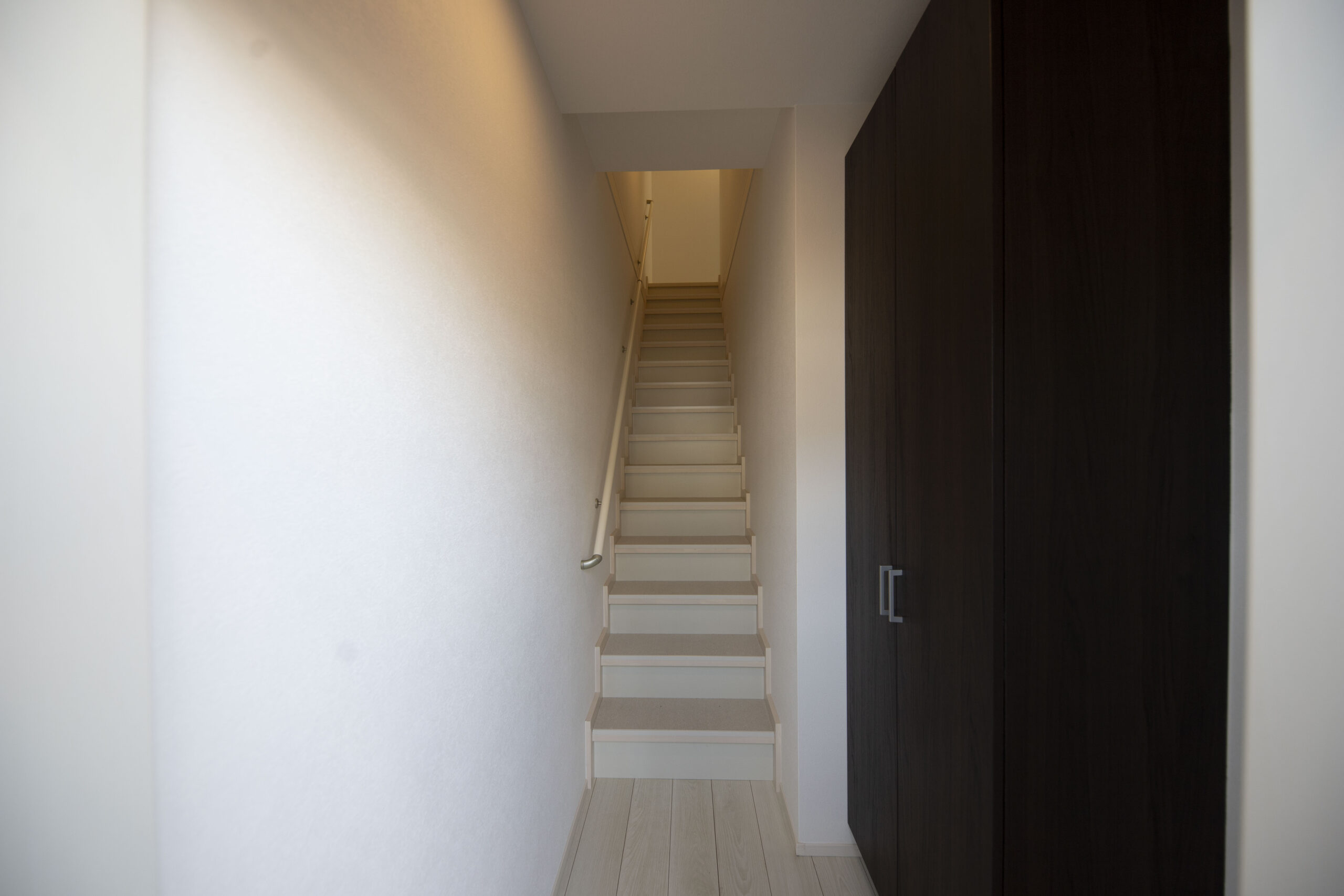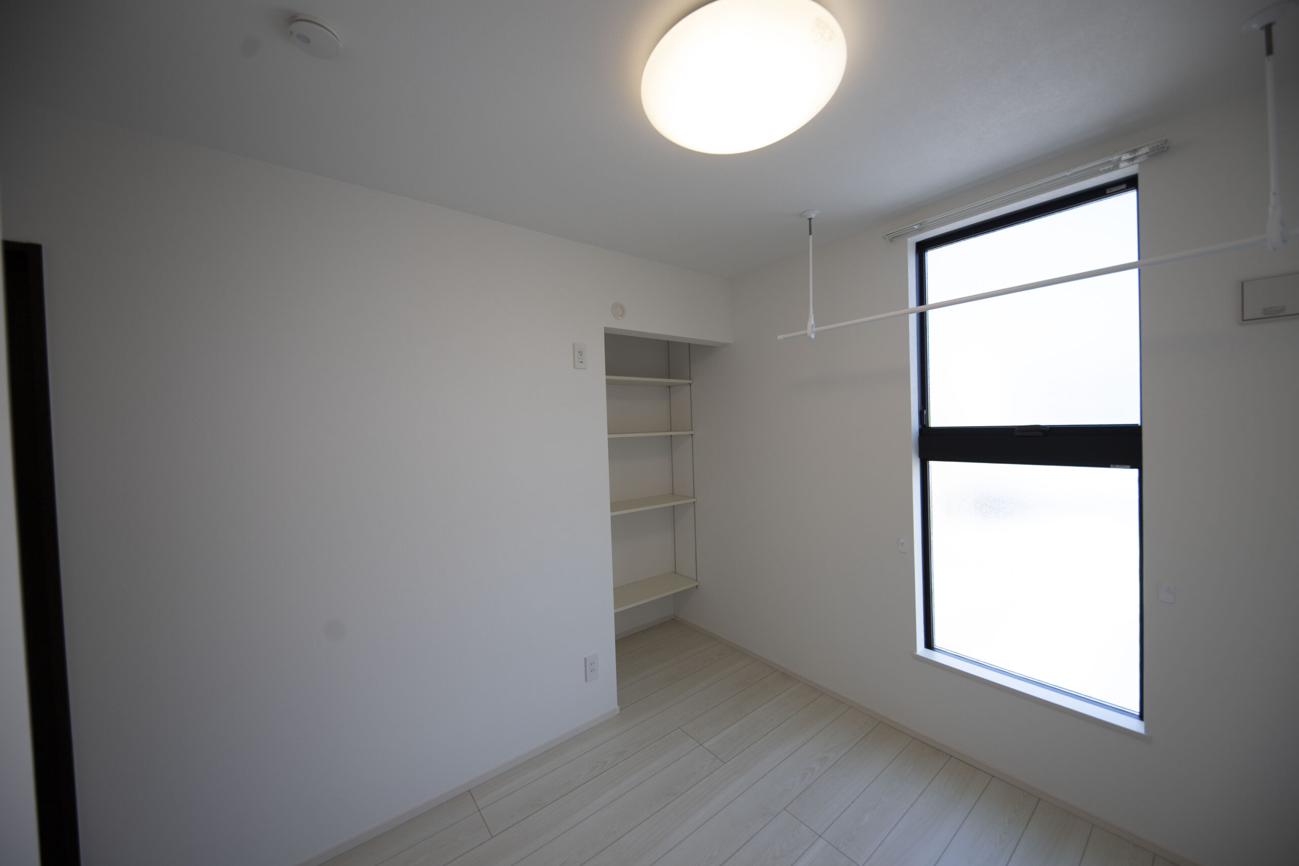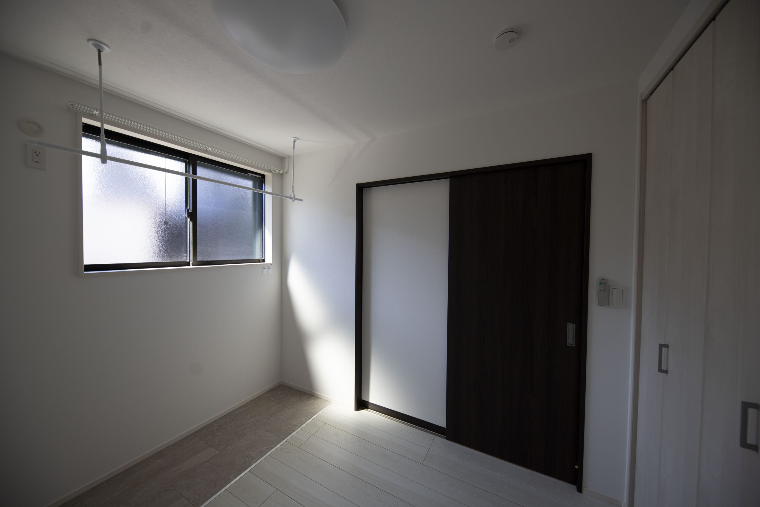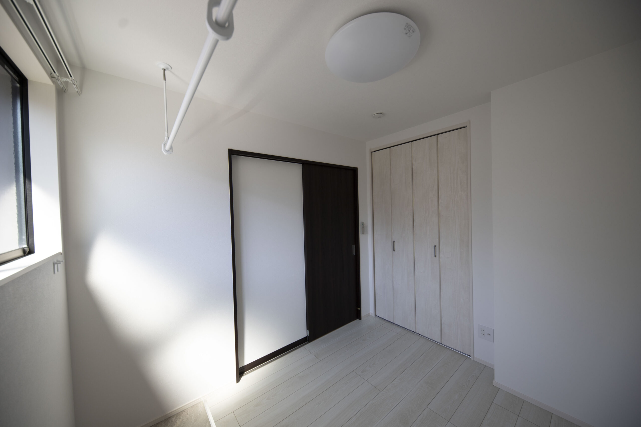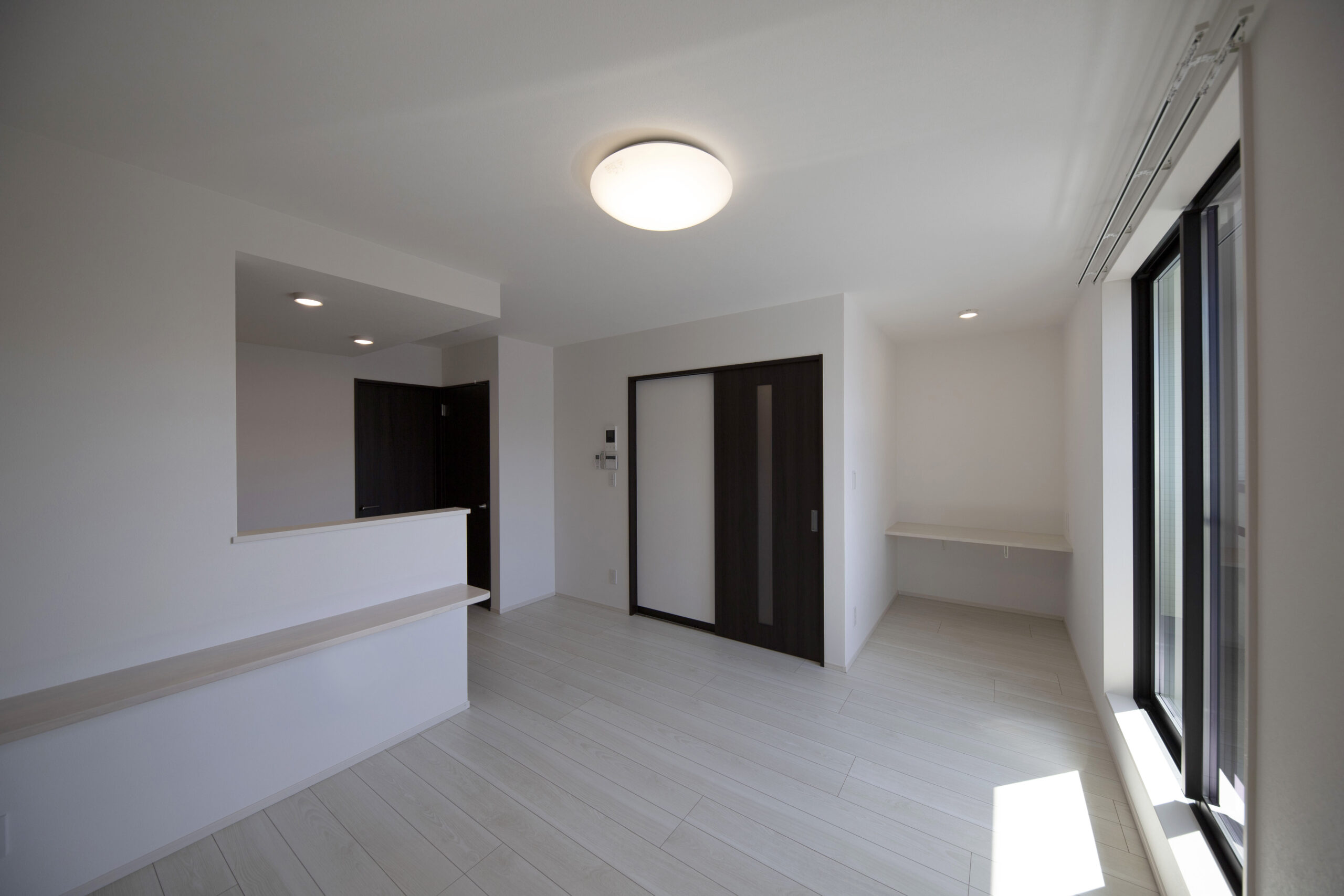 2階のLDKにはワークスペースを備え、書斎や家事コーナーとしても活用できます。さらに、室内物干コーナーを設け、水に強い素材で床を仕上げているため、雨の日も安心して洗濯物を干せます。