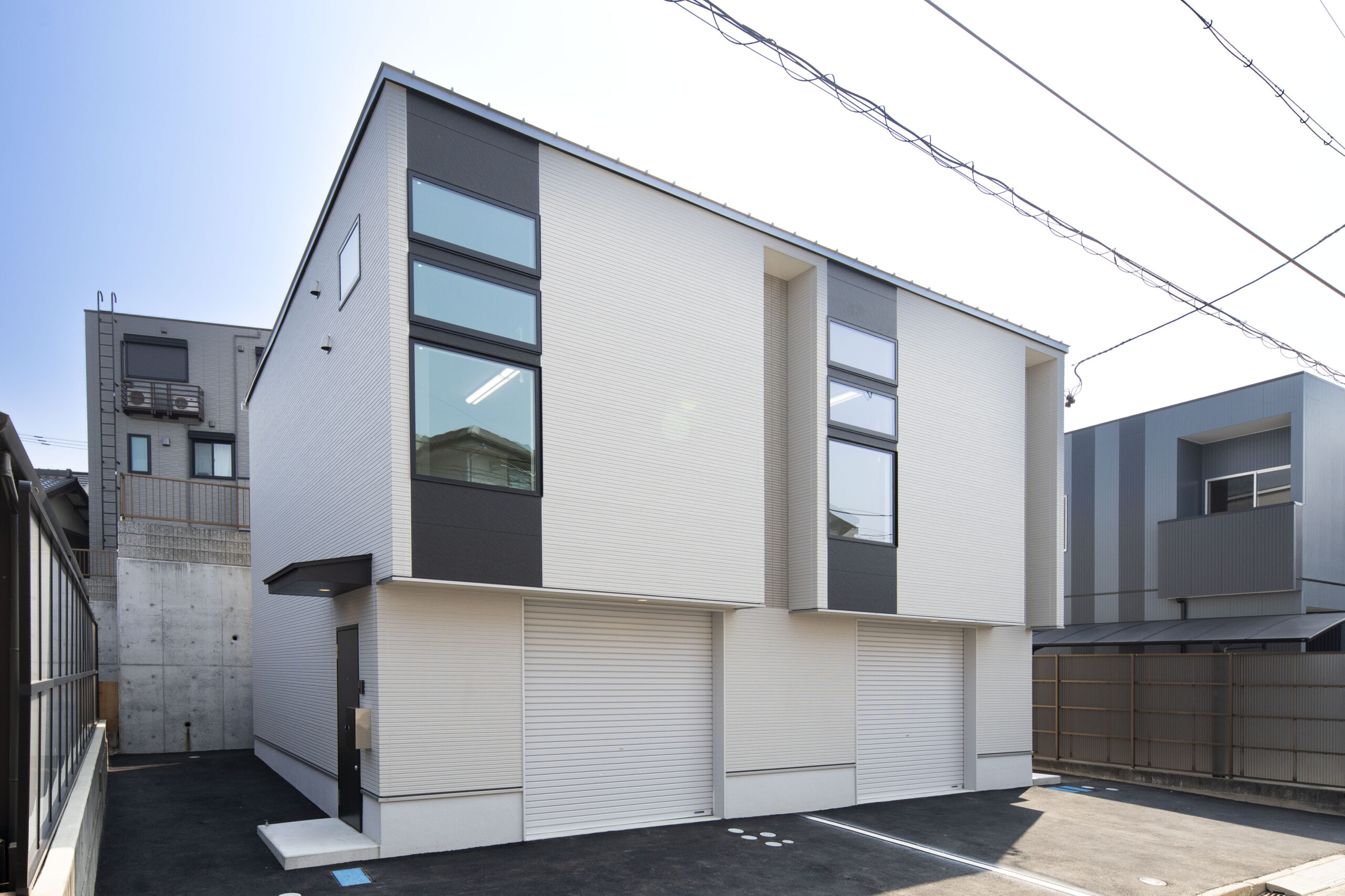 縦ラインを活かしたスタイリッシュな外観が目を引く本物件は、外壁の凹凸やアクセントによって洗練された印象を与えます。1階には大容量の倉庫スペース、2階には快適な事務スペースを備え、建築関係・物流関係・士業など幅広い業種の方にご活用いただける設計です。1階はあえて仕上げを施さず、そのまま倉庫として利用できるだけでなく、用途に応じて自由に改修することも可能。事務スペースにはフロアコンセントを備え、柔軟なレイアウトが可能です。さらに、ミニキッチンや洗面化粧台を完備し、トイレも2か所配置するなど、日常業務や来客対応にも配慮しています。